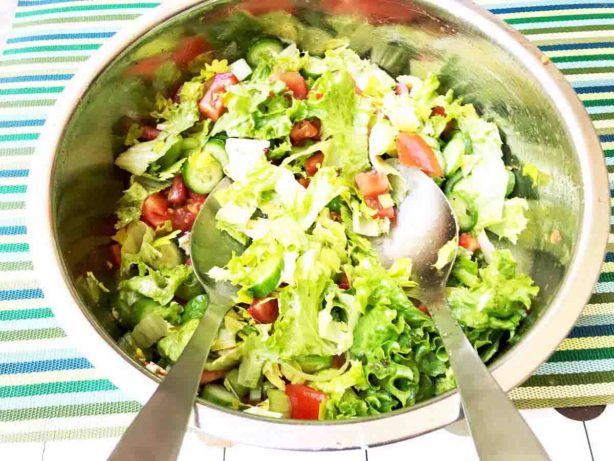 1) If you want to make the salad ahead of time and refrigerate it, just don't add the dressing items, such as salt, lemon juice, olive oil etc. Add these, or any dressing just before serving and mix thoroughly and serve immediately.