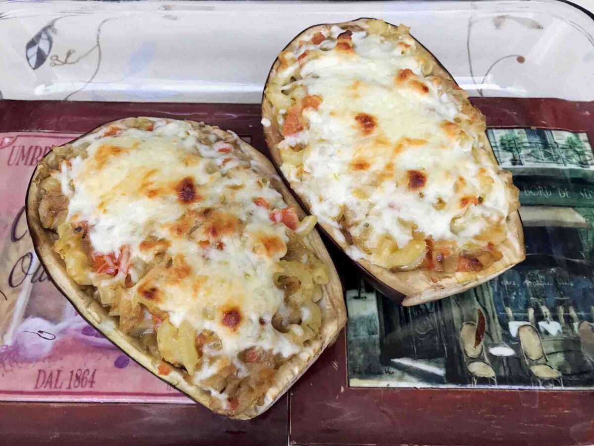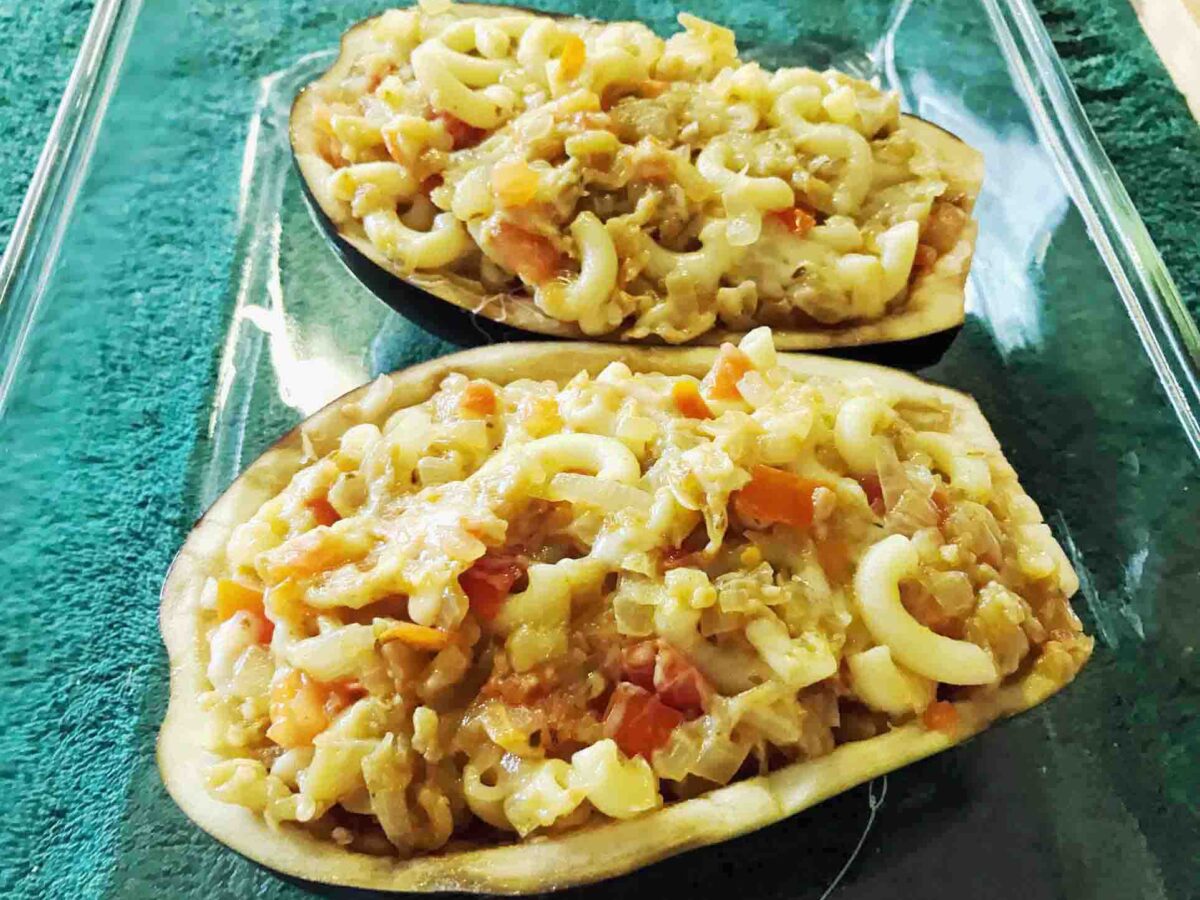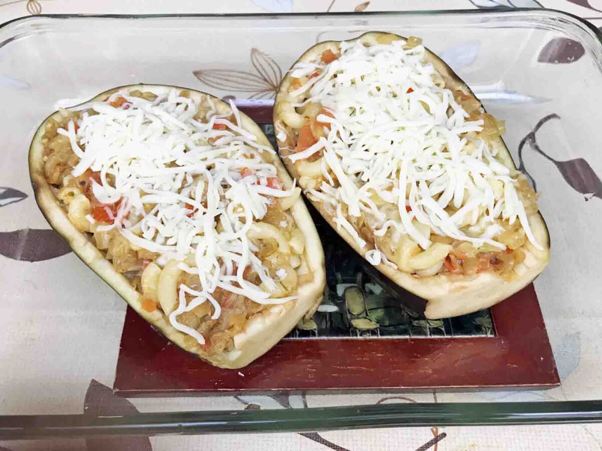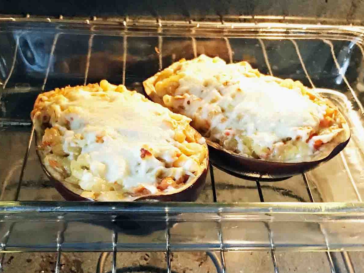Spoon the mixture into the eggplant shells.