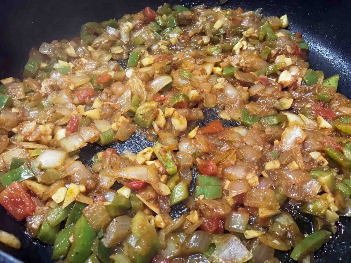 Add the onion, bell pepper and 1/2 teaspoon salt. Cook for 5 minutes or until veggies are cooked.Add the garlic and cook for 5 more minutes, or until garlic is cooked.Add the tomato, chili powder and 1/4 cup salsa. Mix and cook for 3 minutes.