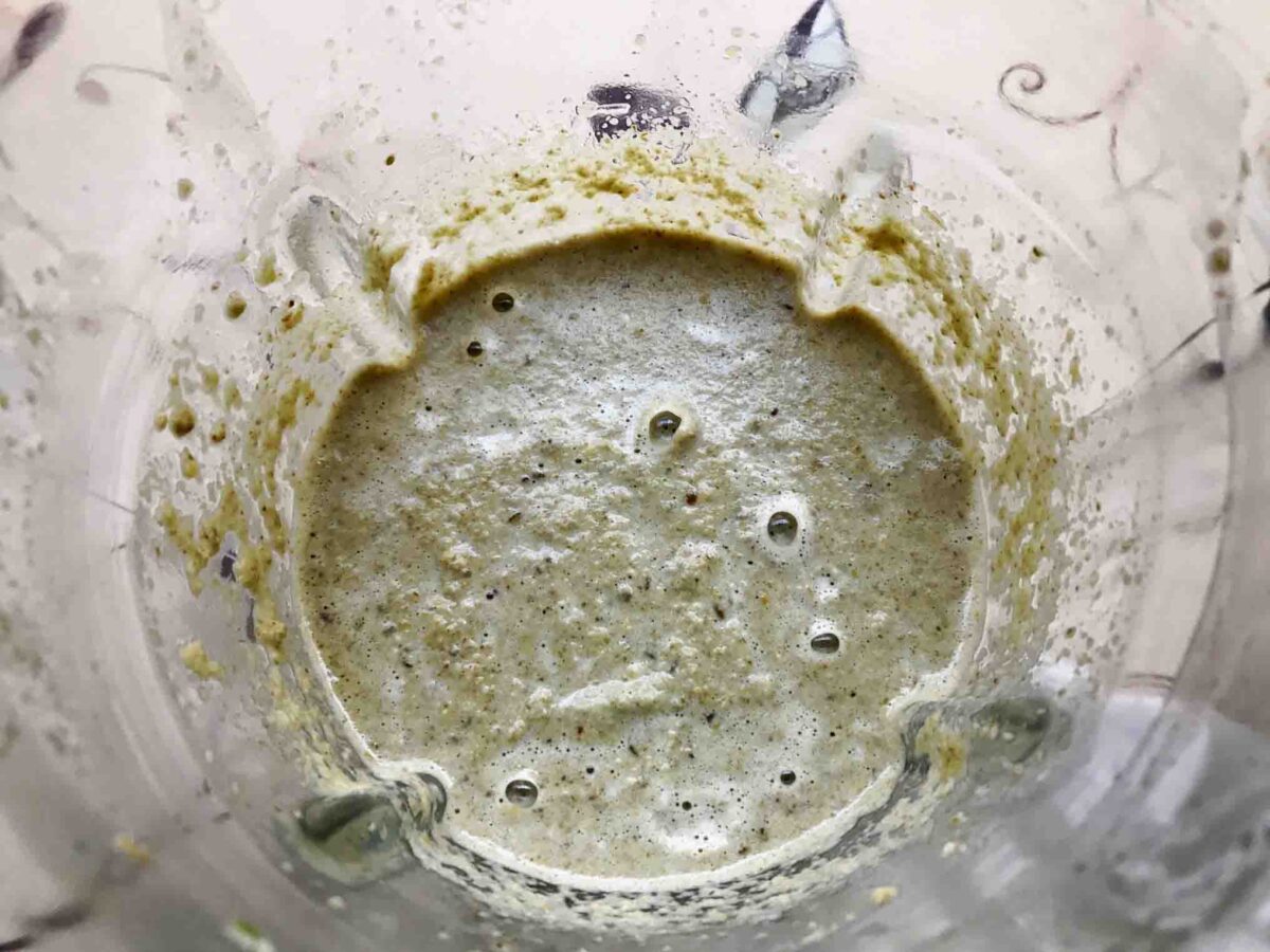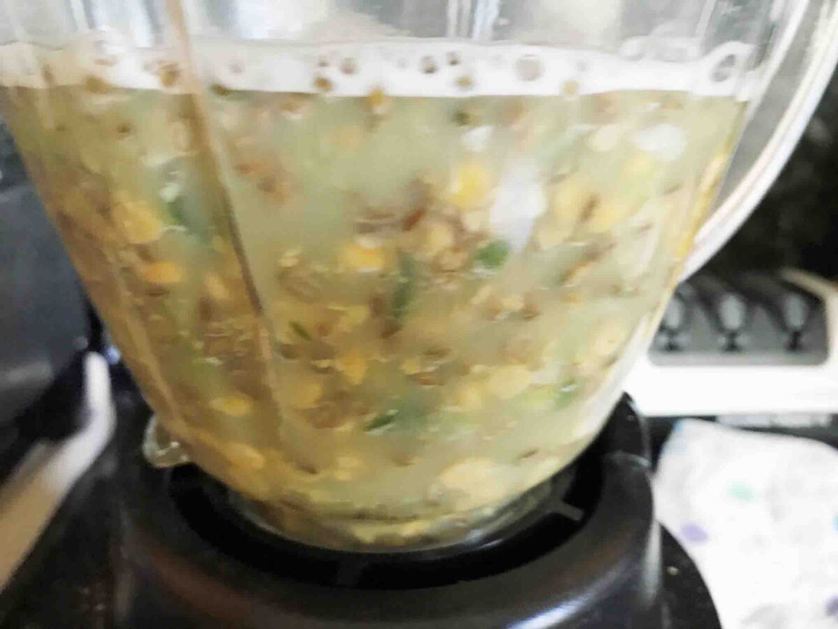 Grind the ingredients in the blender, from medium speed to high, until the mixture is very smooth. If the mixture is too thick and does not grind easily, add water to the blender as necessary, a little at a time.